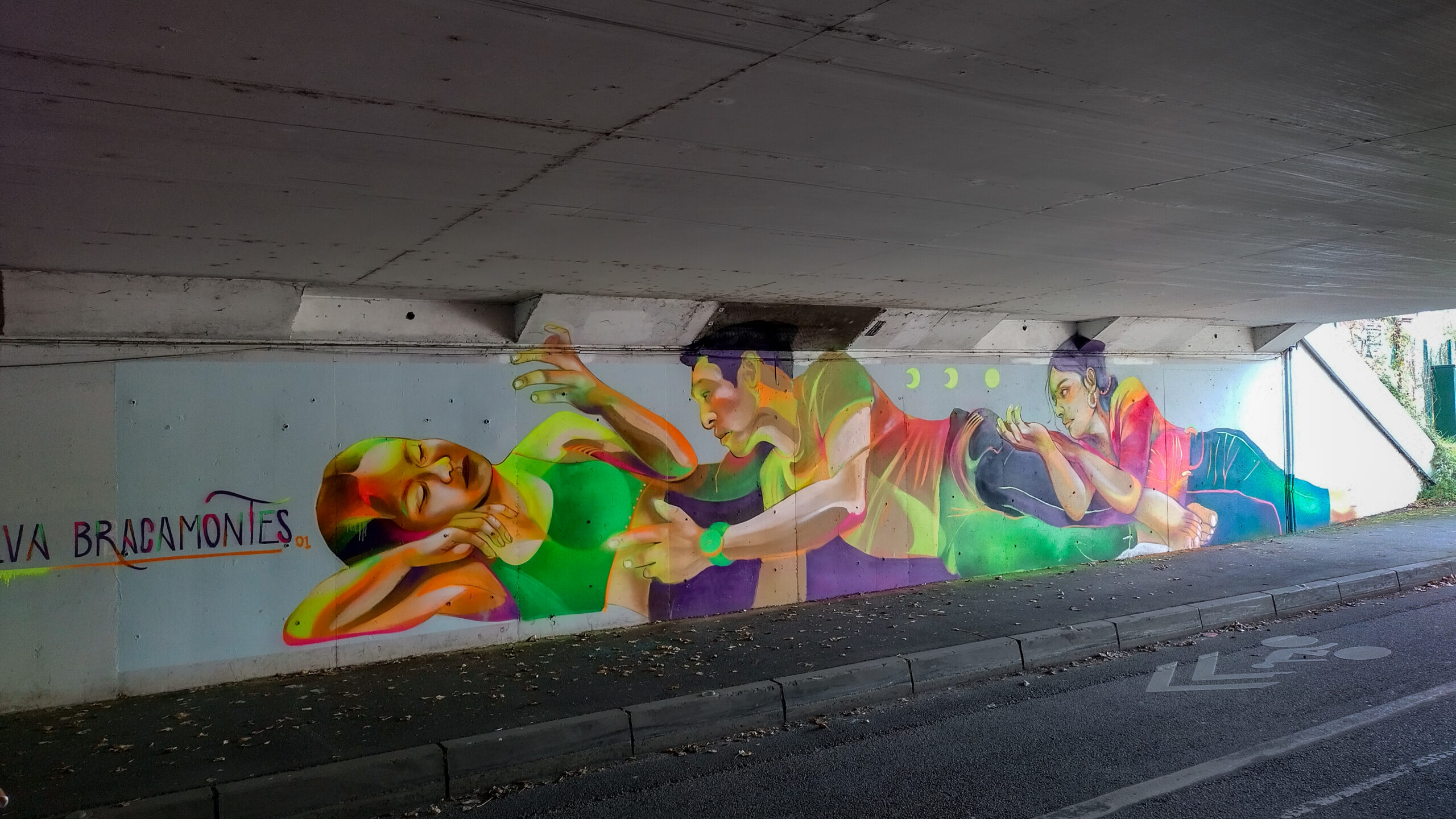 Depuis le 14 octobre 2024, les parois du tunnel sous l’A64 ont bénéficié de travaux de peinture qui leur donnent un nouveau look. Les fresques ont été réalisées par le collectif d’artistes Latino Graff. Pendant 4 jours, différents artistes ont pu laisser leur créativité se développer pour notre plus grand plaisir.
